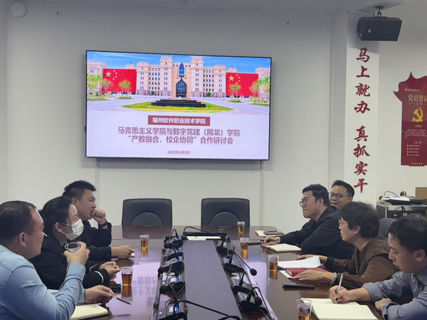 为深入贯彻“大思政”理念,推动校企协同产教研合作,4月9日上午,我校马克思主义学院与数字党建(网龙)学院于学校行政楼306会议室举行“产教融合,校企协同”合作研讨会。学校党委书记林莺党宣部部长郑凯源、马克思主义学院院长吴海礁副院长叶镇国、数字党建(网龙)学院项目经理李贤英及其团队参会,会议由吴海礁院长主持。