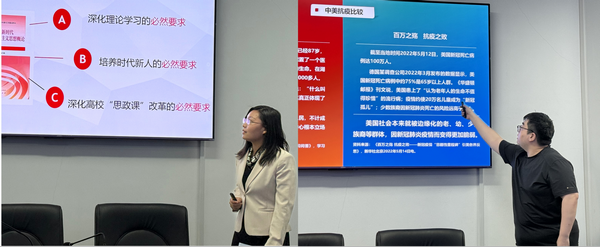 叶镇国副院长指出,案例选取和讲述中要紧密结合教学目标,主线鲜明突出,逻辑严谨缜密,实现以理服人、以情动人。陈剑玉、于梦月两位老师也充分肯定了两位分享老师的精彩表现,并提出在日常教学中要聚焦时代热点,回应学生关切,动态更新教学内容与资源。