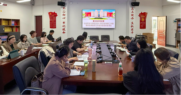 为进一步贯彻习近平总书记关于学校思政课建设的重要指示精神,促进学校思政教育质量,落实“习近平新时代中国特色社会主义思想概论”课程建设标准,持续增强思政课实效,2025年4月15日下午,马克思主义学院在行政楼306召开2024-2025学年第二学期期中工作会议暨集体备课会。马克思主义学院院长吴海礁、副院长叶镇国以及全体专任教师参加此次会议,会议由习近平新时代中国特色社会主义思想概论教研室主任陈彩虹主持