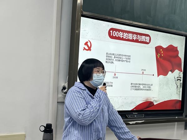 大会伊始,于梦月老师为青马社学员介绍了党的百年光辉历程,一百年前,中国大地上诞生了中国共产党,它像一盏明灯冲破了黑暗,像初升的太阳给中国带来了希望的曙光。百年风雨兼程,中国共产党一路披荆斩棘,谱写了一段伟大的壮丽篇章,用不屈的民族脊梁挺起了中国美好的明天。