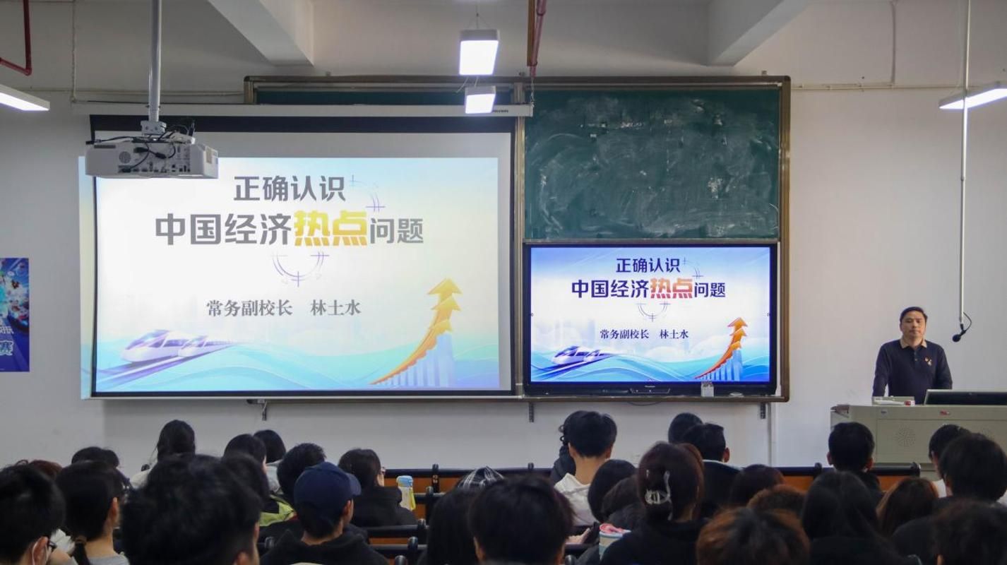 授课中,林土水勉励同学们要全面辩证看待经济发展形势,坚定对中国经济长期向好的信心。他希望大家扎实锤炼专业本领、提升综合素养,未来主动投身中国式现代化建设实践,在强国建设、民族复兴的征程中贡献青春力量。