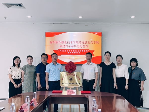 2023年8月28日下午,福州软件职业技术学院马克思主义学院与福建省革命历史纪念馆举行“社会实践基地”共建签约揭牌仪式。我院马克思主义学院院长吴海礁、副院长叶镇国一行与福建省革命历史纪念馆副馆长林俊超、公众服务部主任王增华等出席仪式并进行座谈。